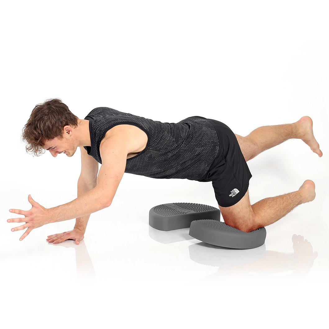Kräftigungsübungen stärken die Rückenmuskulatur und Bewegung entlastet die Bandscheiben und fördert die Durchblutung. Durch die Anwendung des Aero-Step® free werden die sensomotorischen Trainingsreize noch intensiviert. Die Sensomotorik ist vereinfacht gesagt das Zusammenspiel zwischen sensorischen (z.B. Nervenbahnen) und motorischen (z.B. Muskulatur, Sehnen, Bänder ) Leistungen des Körpers. Du trainierst auf den luftgefüllten und dadurch dynamischen Unterlagen von TOGU also nicht nur deine Gleichgewichtsfähigkeit, sondern ganz nebenbei und unbewusst auch dein Nervensystem und die tieferliegende Muskulatur. Z.B. die Tiefenmuskulatur um die Wirbelsäule, die für die Stabilität und die Beweglichkeit deines Körpers sorgt.