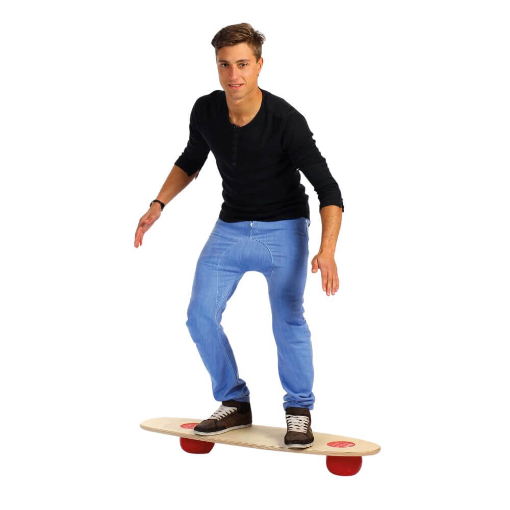 Unter der speziell entwickelten Platte befinden sich zwei extrem robuste luftgefüllte Bälle. Im Unterschied zu herkömmlichen Balance Boards ist die Standfläche durch diese spezielle Konstruktion schwimmend gelagert. Ein Waage, die fit macht. Ideal für alle, die Boardsport und Freeride lieben und sich auf die neue Saison vorbereiten wollen.