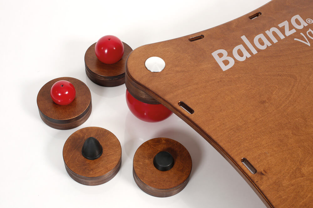 Das TOGU Balance Board Balanza Vario - made in Germany – ist die neue multifunktionale Trainingsstation von TOGU. Balanza Vario revolutioniert das Gleichgewichts- und Koordinationstraining auf dynamischen Unterlagen und ist mehr als ein einfaches Balance Board. Es bietet die einzigartige Möglichkeit mit nur einem Gerät unzählige Variationen und Schwierigkeitsgrade von leicht zu schwer, von stabil zu instabil, zu erzeugen.