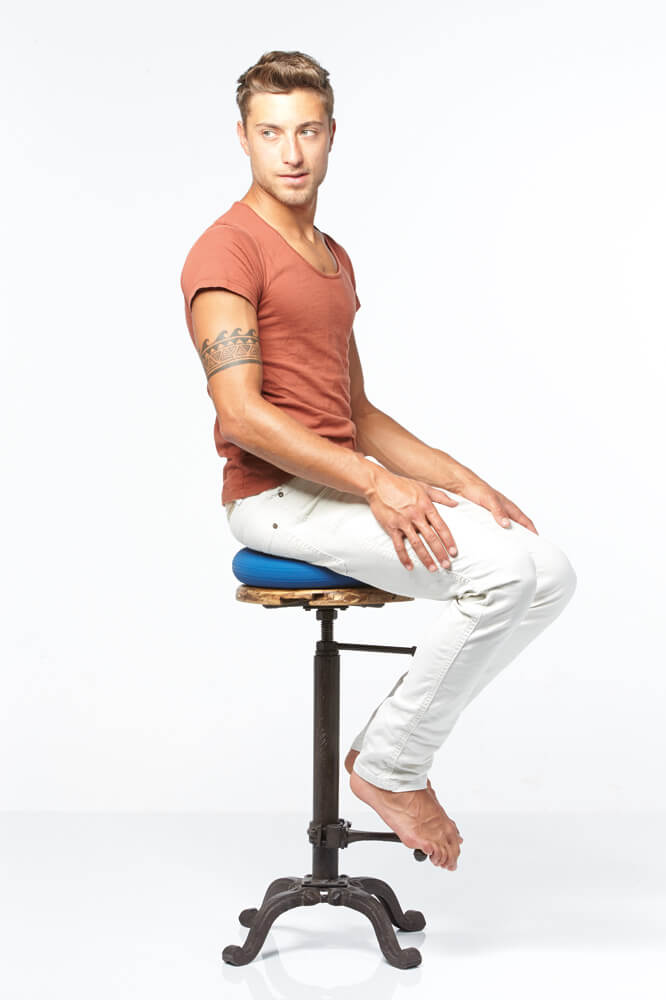 "Das Dynair ist echt perfekt, da ich für einen großen Ball keinen Platz habe. Beim ersten Mal spürst Du nur dieses wackelige Ding unter Dir. Aber nach kurzer Zeit gewöhnst Du Dich an das neue Gefühl und merkst: Da passiert etwas mit meinem Körper! Ich sitze aufrechter, ich gleiche immer etwas aus und spüre meine Rückenmuskeln."