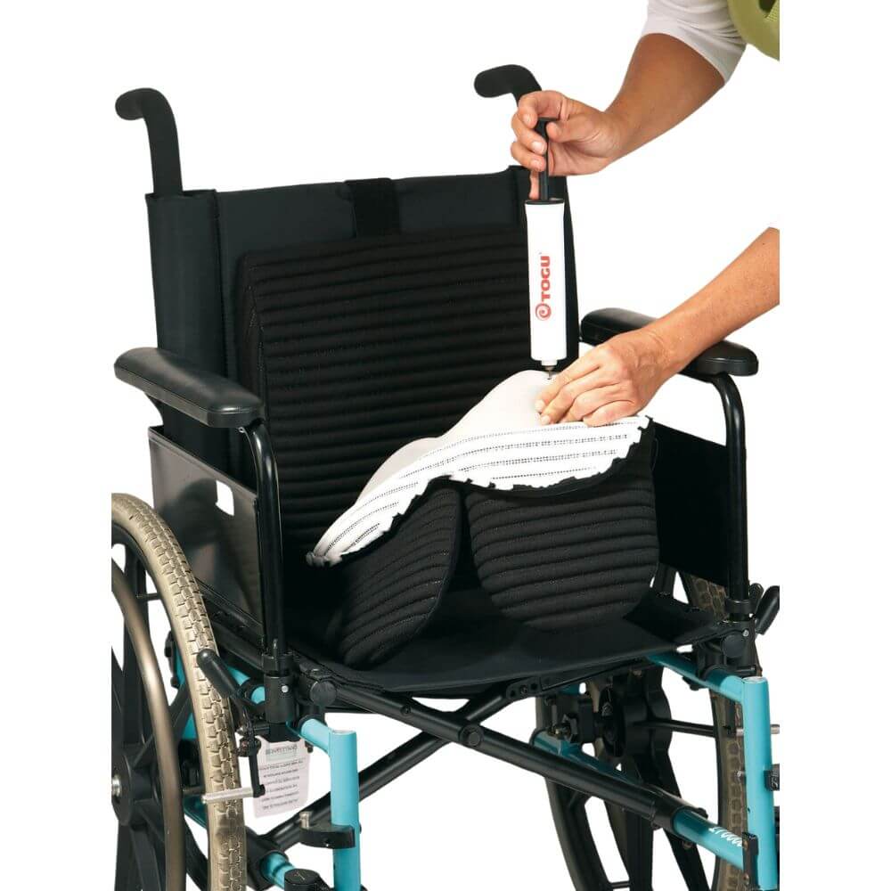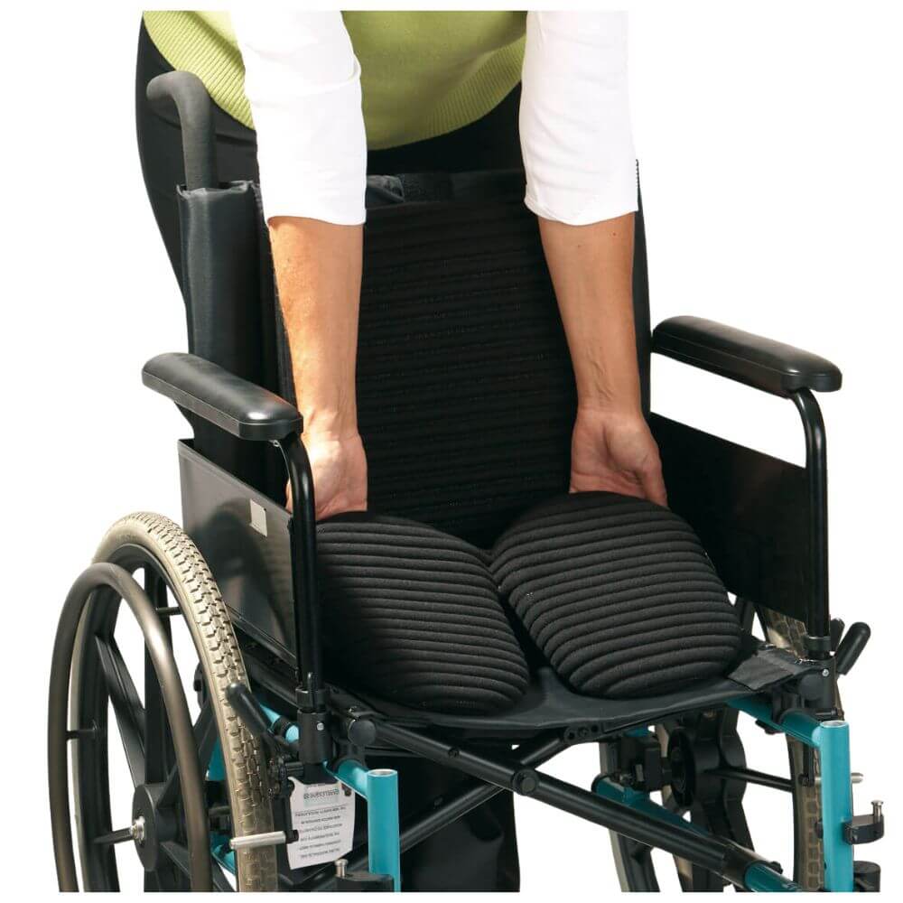 Promotes upright posture. Stimulates torso musculature. Fits almost every wheelchair. Can prevent bed sores. Absorbs your breathing motions and transforms them into small, delicate movements. With high quality (climate control material) cover.
