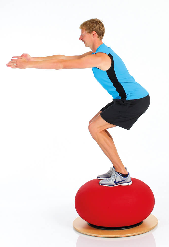 The new Dynaswing - made in Germany - is a balance trainer and fitness ball in one. It allows for exciting training excercises while its stable and wooden ground plate provides safety. Movements and vibrations are transfered to the body and the device giving a direct feedback. Users can perform standing and balancing exercises more safely on this device, which is a further development of the popular Dynair Ballkissen and Pendelball.