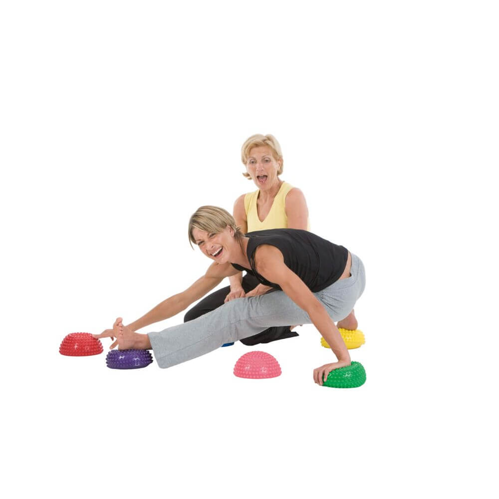 The Senso Balance Hedgehog is supplied as a set of 2 together with exercise instructions. As an unstable base for the one-legged stand, in the four-footed stand or as part of a course, it has numerous applications. The air filling and the curvature create a "wobbly" surface. In order to bring about the necessary compensatory movements, the brain has to target the correct deeper lying muscles. These connections are particularly well promoted by the Senso Balance Hedgehog.