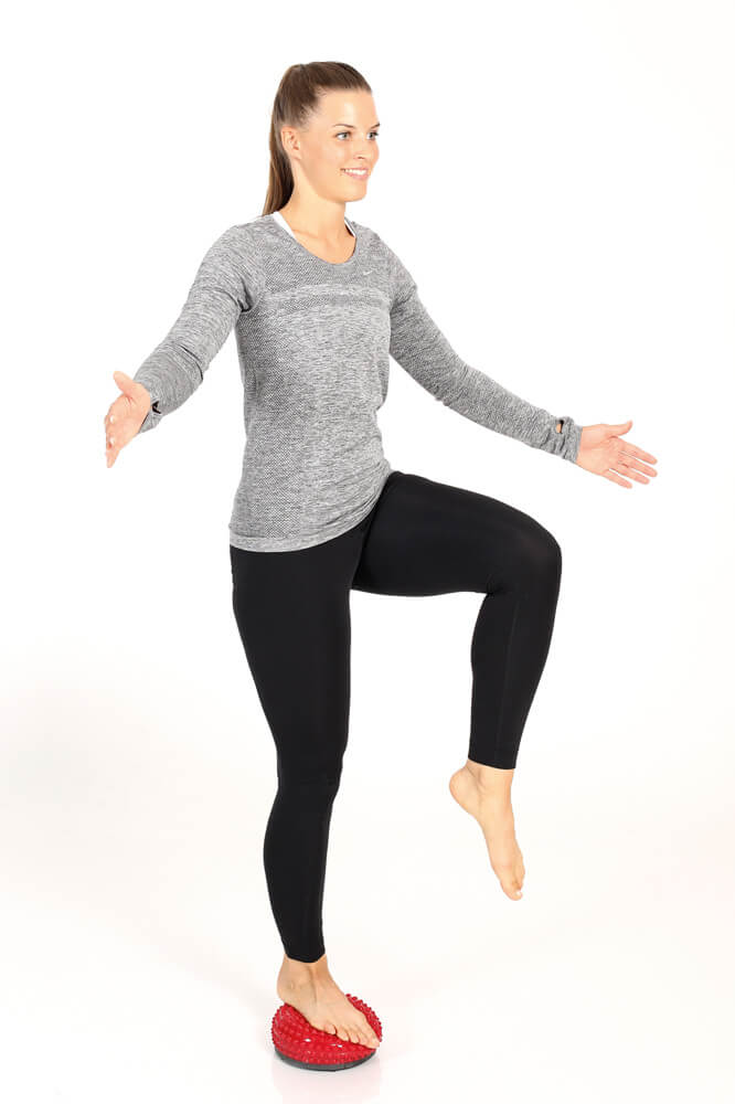 Therefore coordinative and stabilizing exercises can be executed in an even more versatile way. Balance training, which effects sensorimotor functional and muscle training at the same time, can be done in standing, kneeling and lying positions. Applicable particularly in the area of the foot and leg axis training.