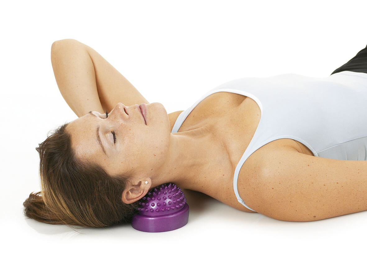 Die Massage Nex®, kann auf dem Boden, z.B. auf einer Matte oder auch am Rand der Badewanne platziert werden. Dann einfach den Nacken auflegen, Augen schliessen und entspannen. Für eine Eigenmassage kann der Kopf und Nackenbereich entsprechend über das Produkt bewegt werden.