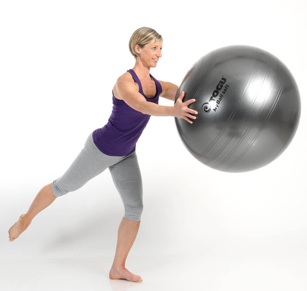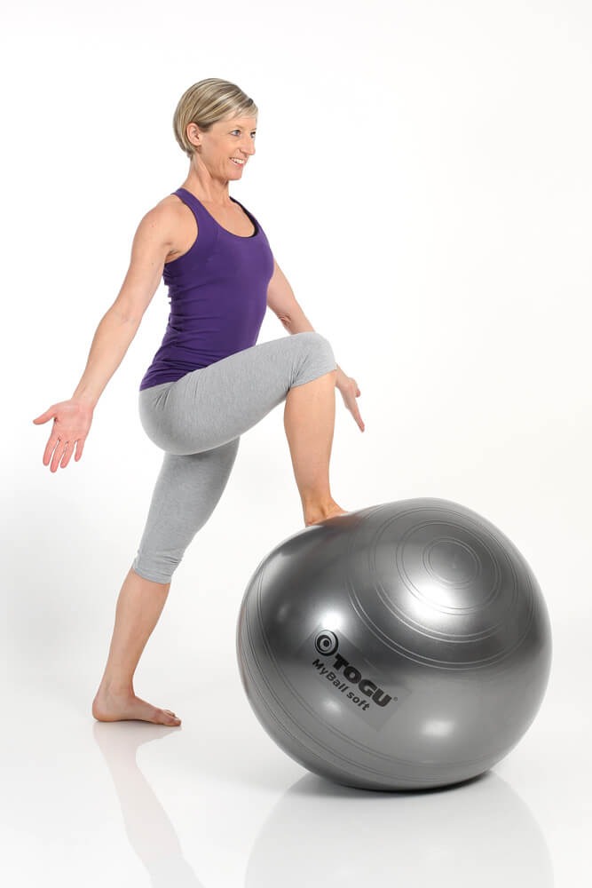 "Ich setze mich auf den MyBall Soft und merke sofort die Beweglichkeit des Balles. Um nicht vom Ball zu fallen wird automatisch eine aufrechte Körperhaltung eingenommen. Durch das Bewegen mit dem Gesäß in verschiedene Richtungen halte ich ständig das Gleichgewicht und verbessere so meine Balance. In Rückenlage rolle ich Wirbel für Wirbel meinen Rücken ab und kräftige so meine Rückenmuskulatur. Möchte ich mich entspannen, lege ich mich einfach auf den Rücken, der Ball ist dabei unter meinen Unterschenkeln. Anschließend rolle ich den Ball nach links und rechts. Die speziell geschäumte Oberfläche ermöglicht zudem ein angenehmes Training für diverse Übungen in Bauchlage.“