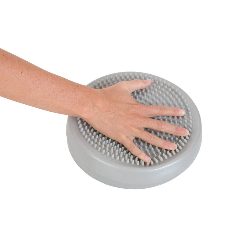 Das Noppenkissen besitzt auf beiden Seiten Noppen und eignet sich gut für gezielte Extensions-Übungen der Finger- und Handmuskulatur. Der Grad der Extension ist individuell über die Luftfüllung steuerbar. Die Luftfüllung kann man mit einer Luftpumpe individuell be- und entlüften.