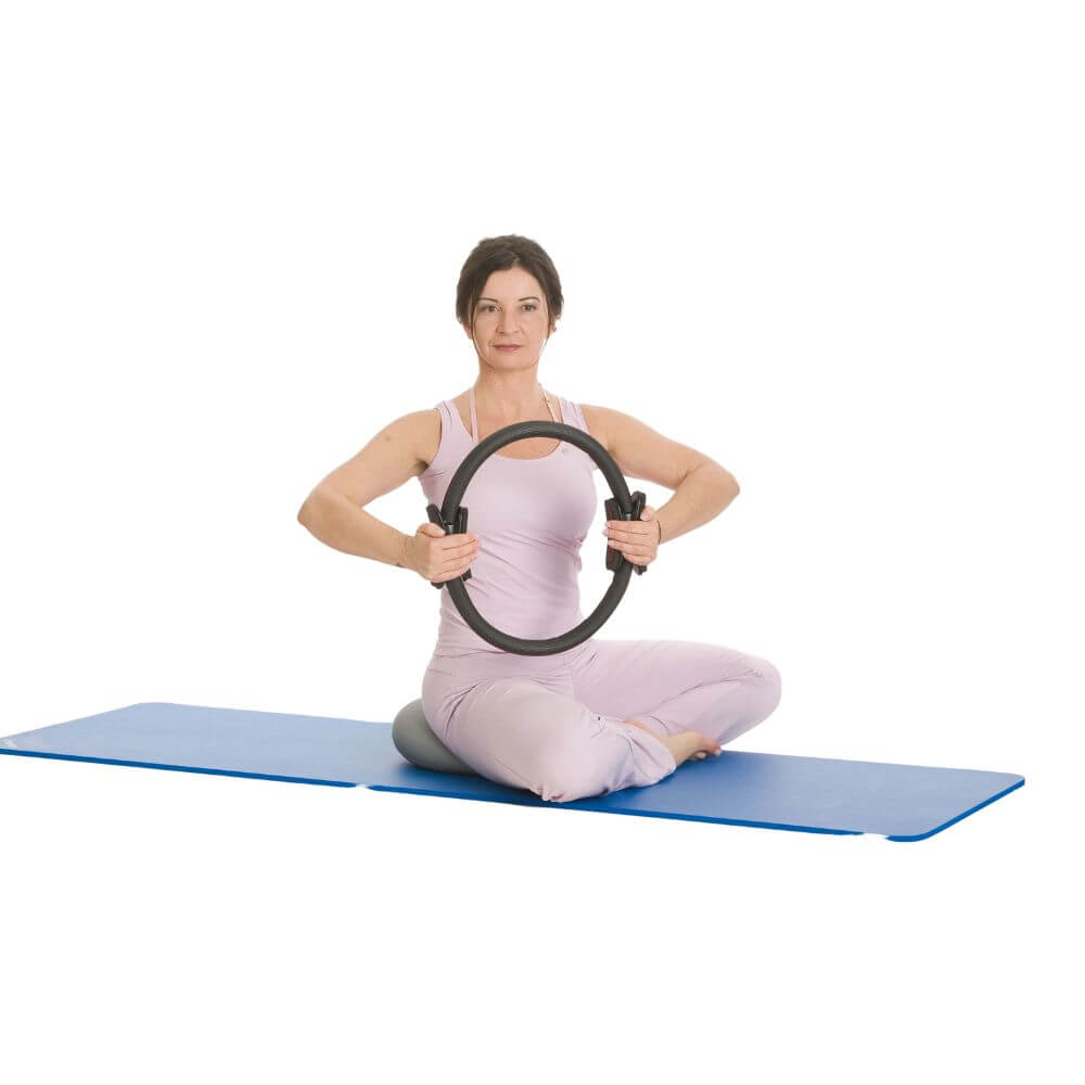 „Mit seinen relativ kleinen Durchmesser von 35 cm kann ich den Pilates Circle Premium überall mitnehmen. Er eignet sich optimal für unterwegs und die Softgriffe an den Seiten fühlen sich äußerst weich an. Sie liegen bequem in den Händen und erleichtern erheblich das Arbeiten gegen den Widerstand. Sobald ich versuche den Ring zusammenzudrücken wird ein Kraftaufwand erforderlich. Bereits nach einigen Wiederholungen spüre ich die Wirkung auf meine Arme und Schultern. Durch eine Kombination mit zusätzlichen Bewegungen beziehe ich weitere Muskelgruppen mit ein. Ein tolles Gerät für Pilates- und Kräftigungsübungen.“