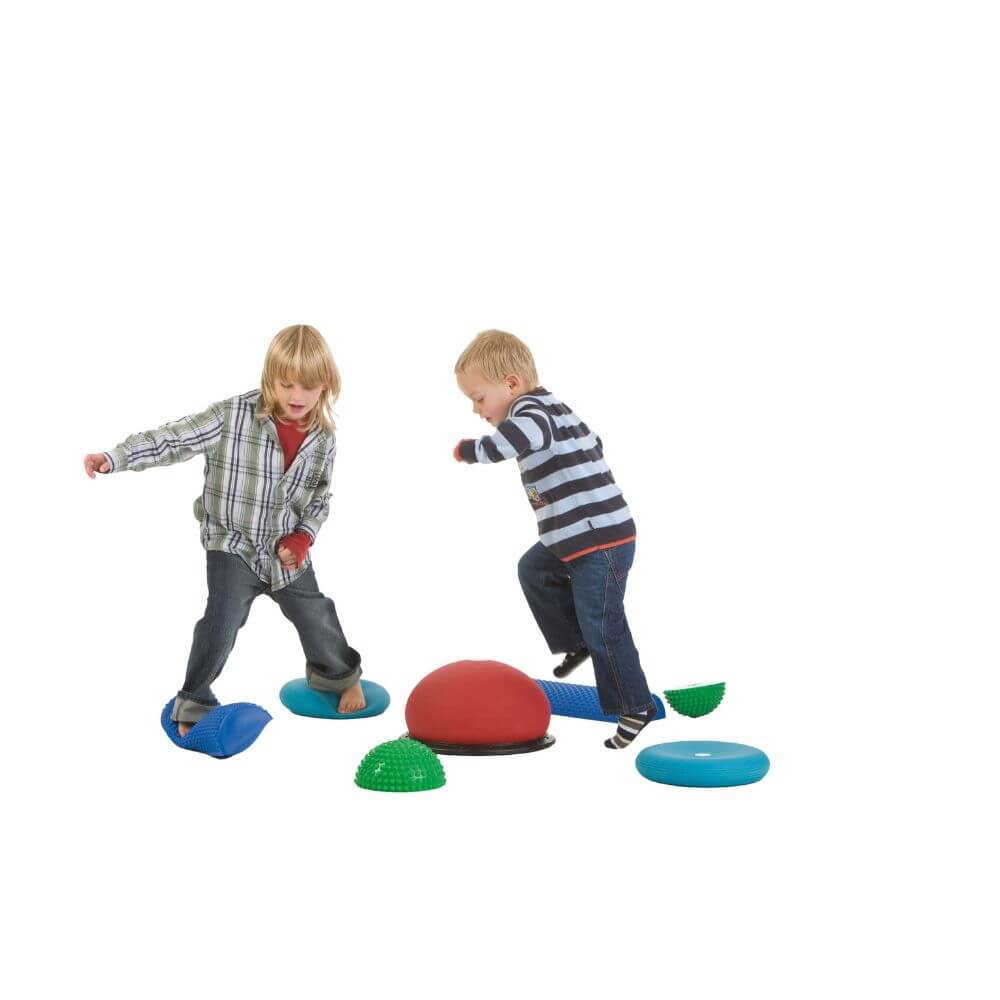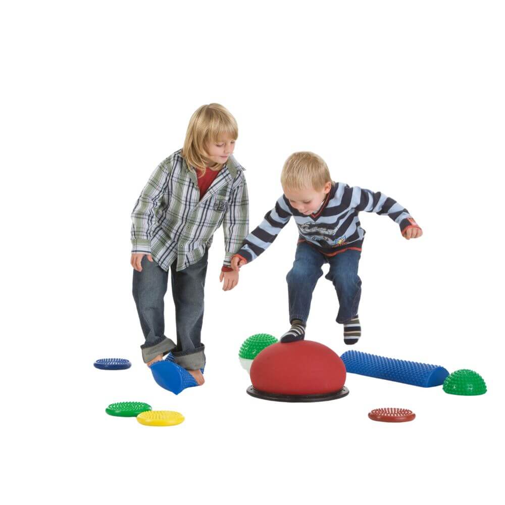 Beim Bewegen über den Parcours wird ein hoher sensomotorischer Reiz gesetzt und die Kinder werden herausgefordert, ihr Gleichgewicht zu halten. Das macht Spaß und trainiert Koordination, Beweglichkeit und Konzentrationfähigkeit.
