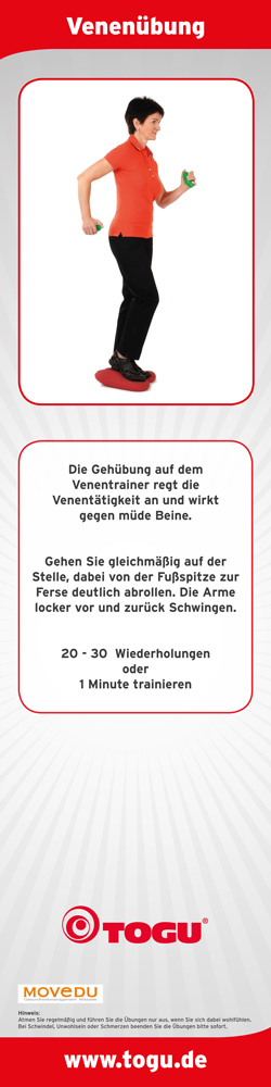 Ein Baustein bildet dieses TOGU Set, das von movedu - Beate Missalek für Aktivierungseinheiten und bewegte Pausen am Arbeitsplatz entwickelt wurde. Weitere Verwendungsmöglichkeiten sind Trainingsflächen in Bewegungszentren, Fitnessstudios und Vereinsräumen. Die Teilnehmer können so schnell, einfach und dabei effektiv in Bewegung gebracht werden.